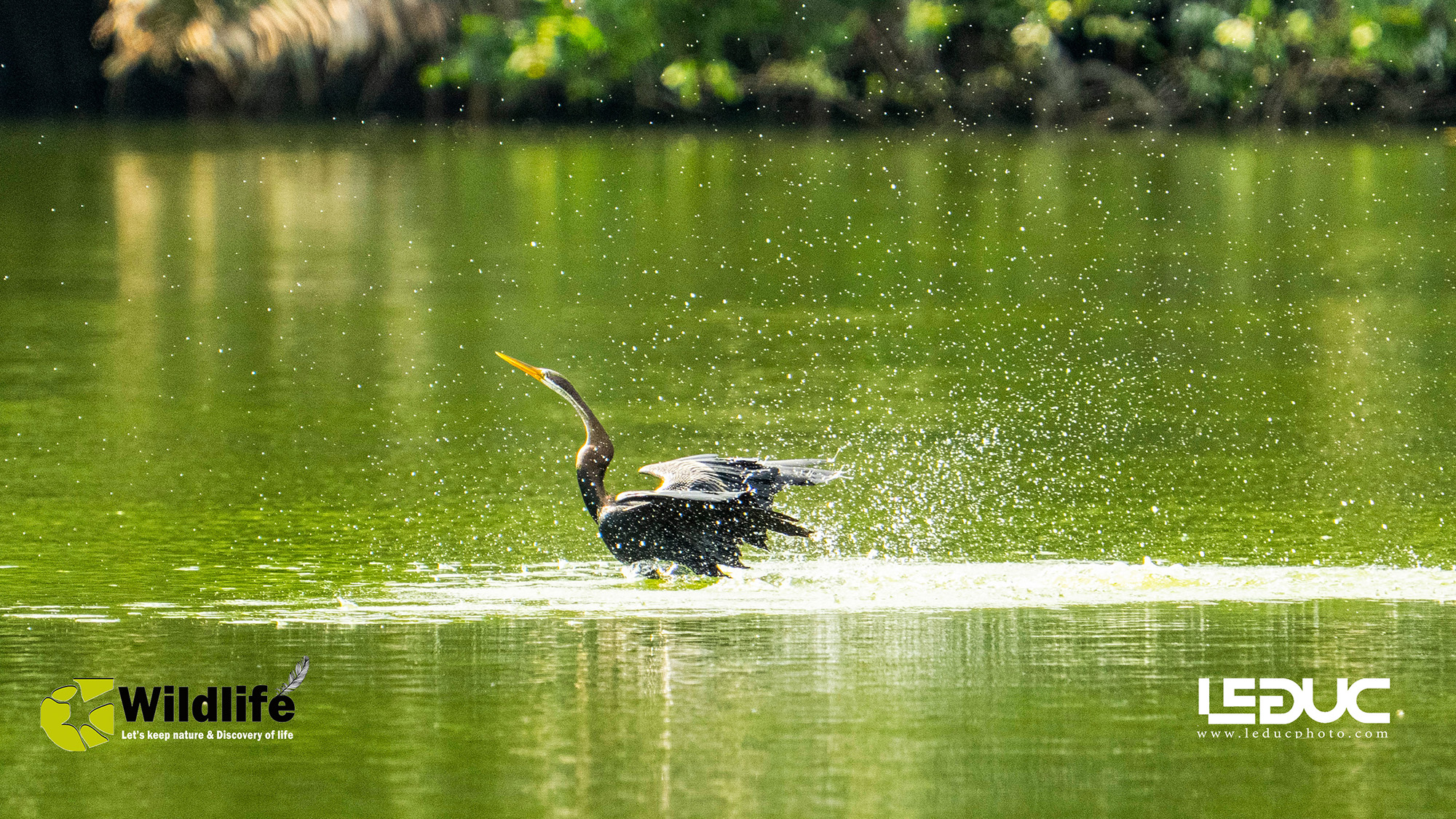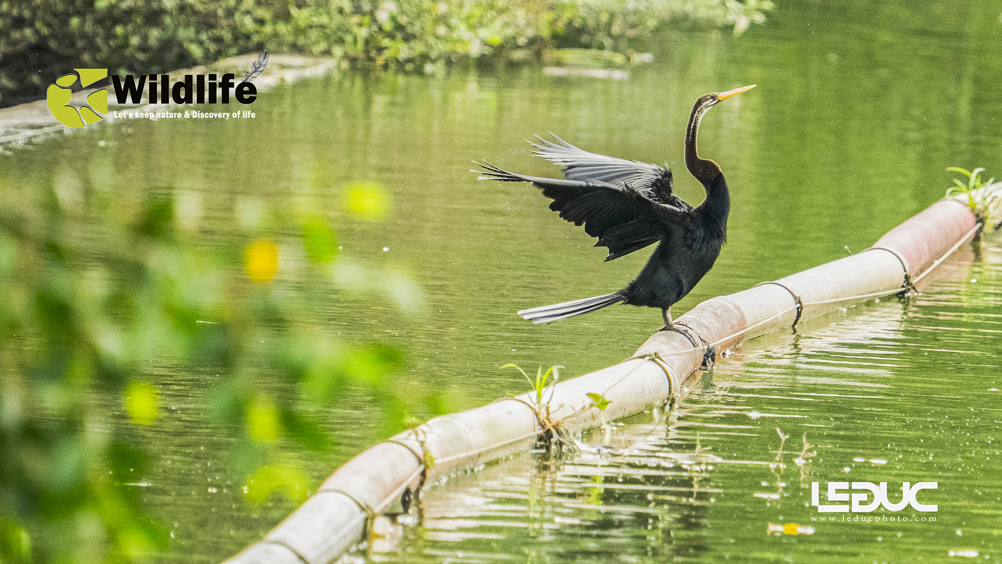 This bird has the characteristics of a long neck, straight and long beak, long tail and membranous legs, similar in shape to cormorants. Currently, the snake-necked bird is listed as endangered in the Vietnam Red Book. They often have the habit of drying their wings to dry their feathers after diving to catch fish, as shown in the picture.